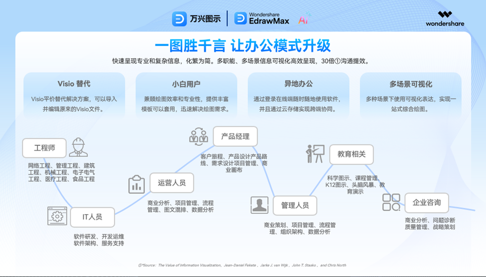 万兴图示(原亿图图示)创意软件为A股上市公司万兴科技旗下产品,涵盖280种绘图类型,流程图,架构图,工业设计,图文混排,一软搞定。