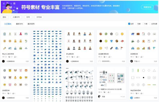 新增的符号社区,是用户上传发布到亿图图示模板社区的自定义符号库,目前已上传近千符号,类型包括但不限于科技、教育、商业办公、建筑、云计算等,其他用户可以自由使用,实现用户原创素材共享,全面丰富个人符号库,满足用户更多样的绘图需求。